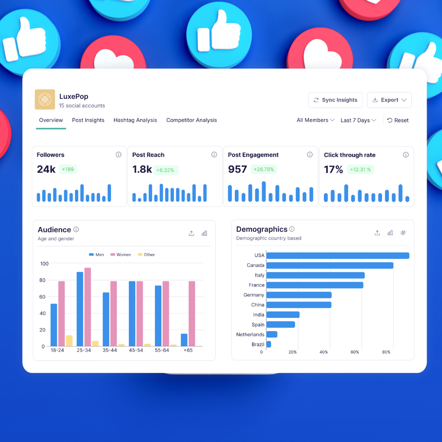 - Até 9 canais: Facebook, Instagram e Google Meu Negócio, LinkedIn, YouTube, TikTok, Twitter (X), Pinterest, Blog WordPress.